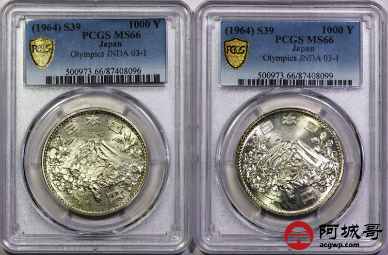 Lot:40 1964日本富士山1000元 PCGS MS66 两枚一组