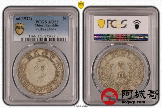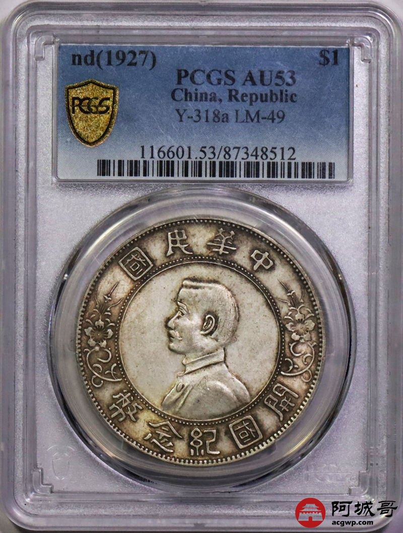 Lot:23 原味老包浆 孙像小头初版 PCGS AU53