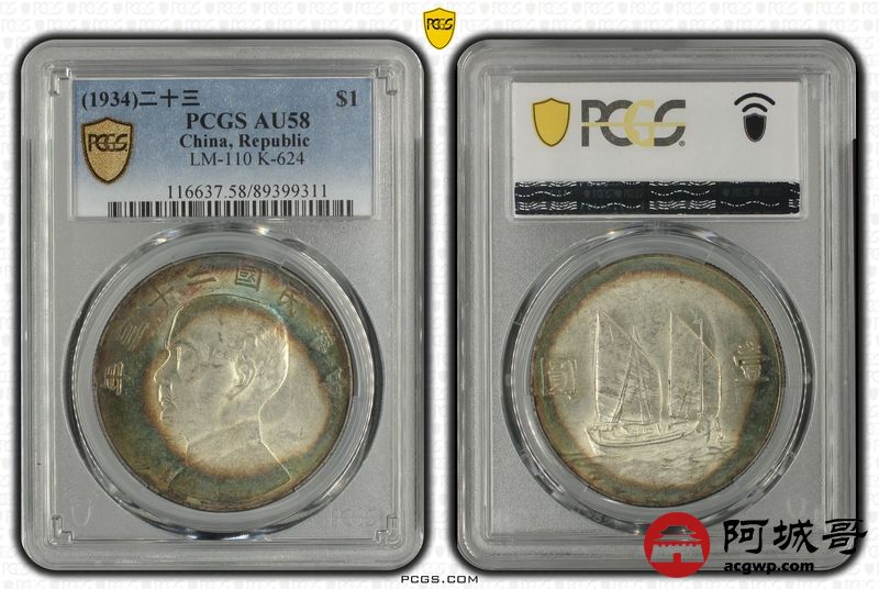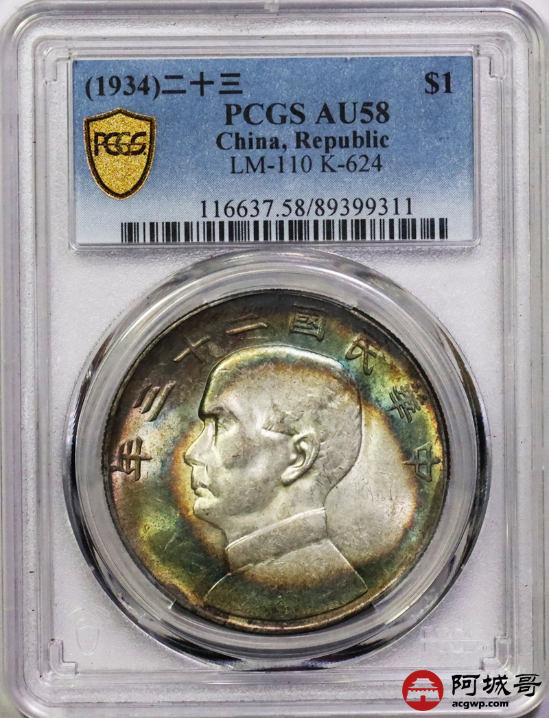 Lot:15 原光 环彩 二十三年船洋壹圆 PCGS AU58