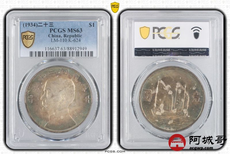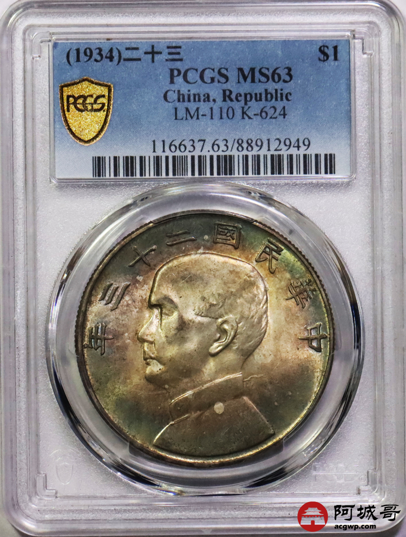 Lot:13 原光 五彩包浆 二十三年船洋壹圆 PCGS MS63