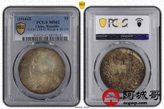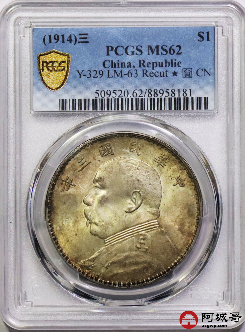 Lot:4 黄油彩原光 三年大头三角圆 PCGS MS62
