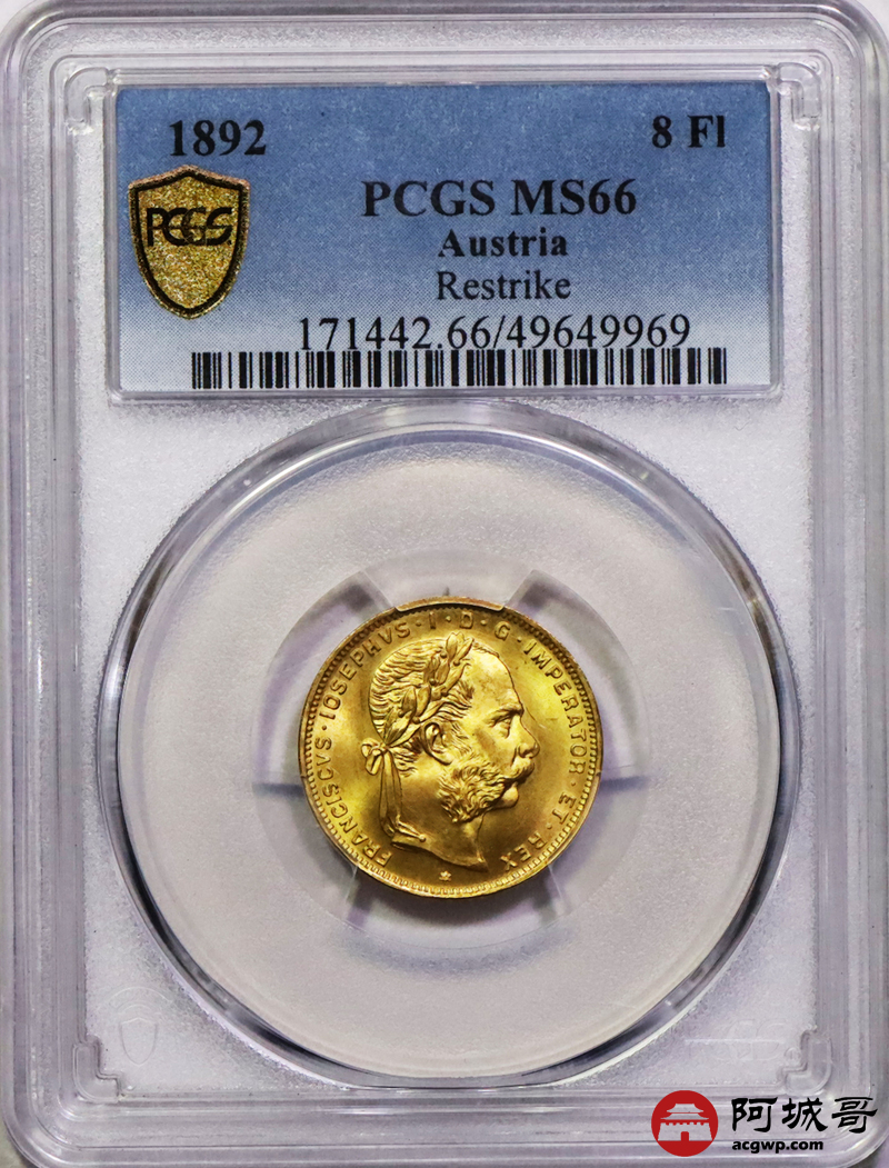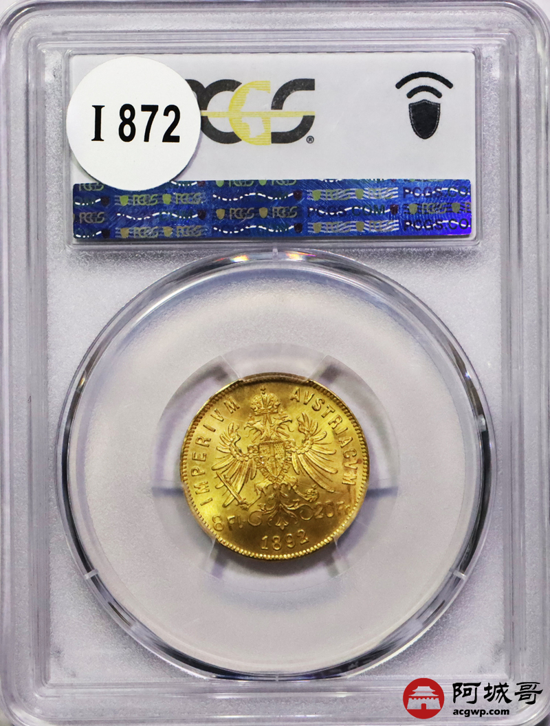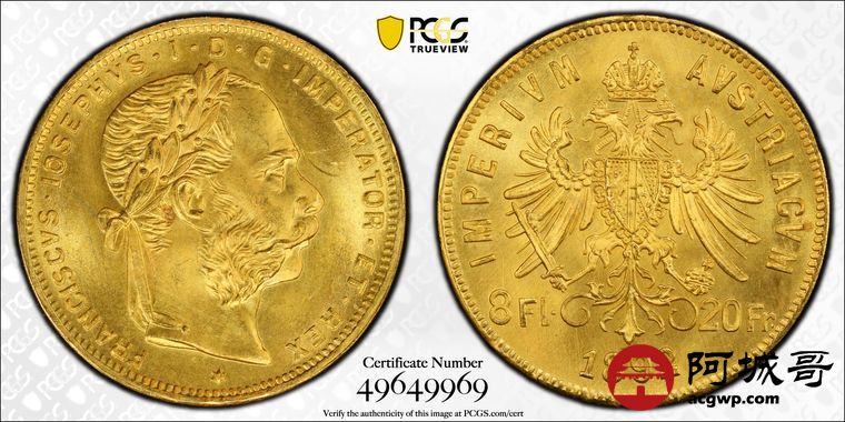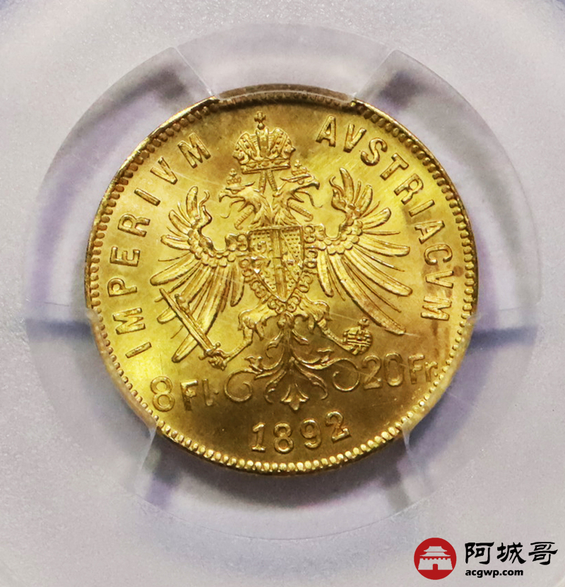 Lot:24 1892年奥匈帝国8佛罗林20法郎金币 PCGS MS66