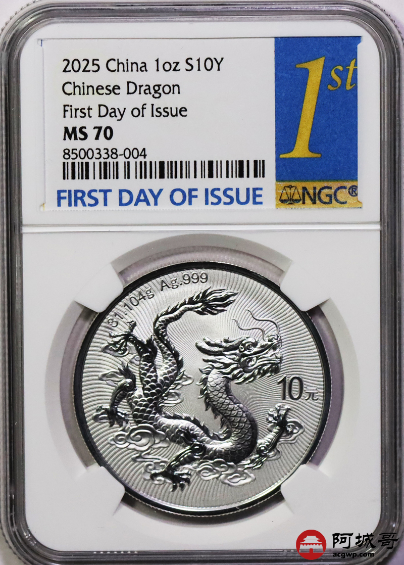 Lot:4 2025年中国龙银币 NGC MS70首日标