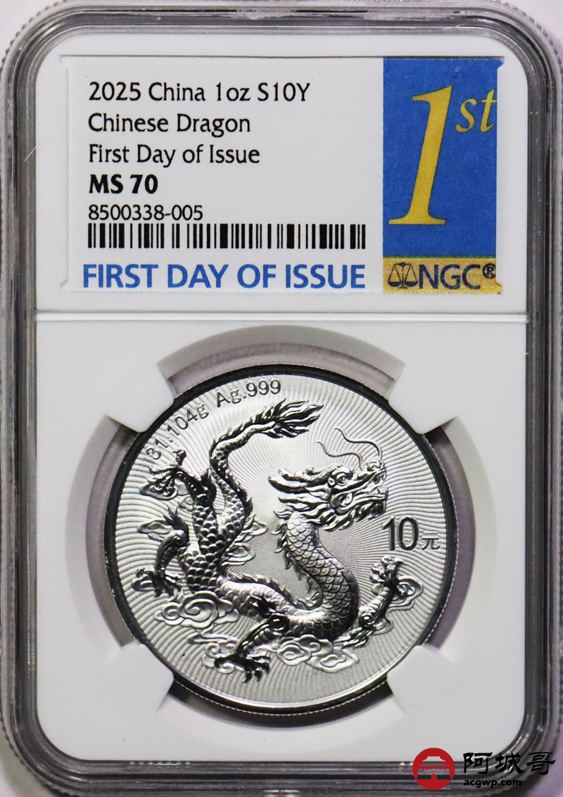 Lot:5 2025年中国龙银币 NGC MS70首日标