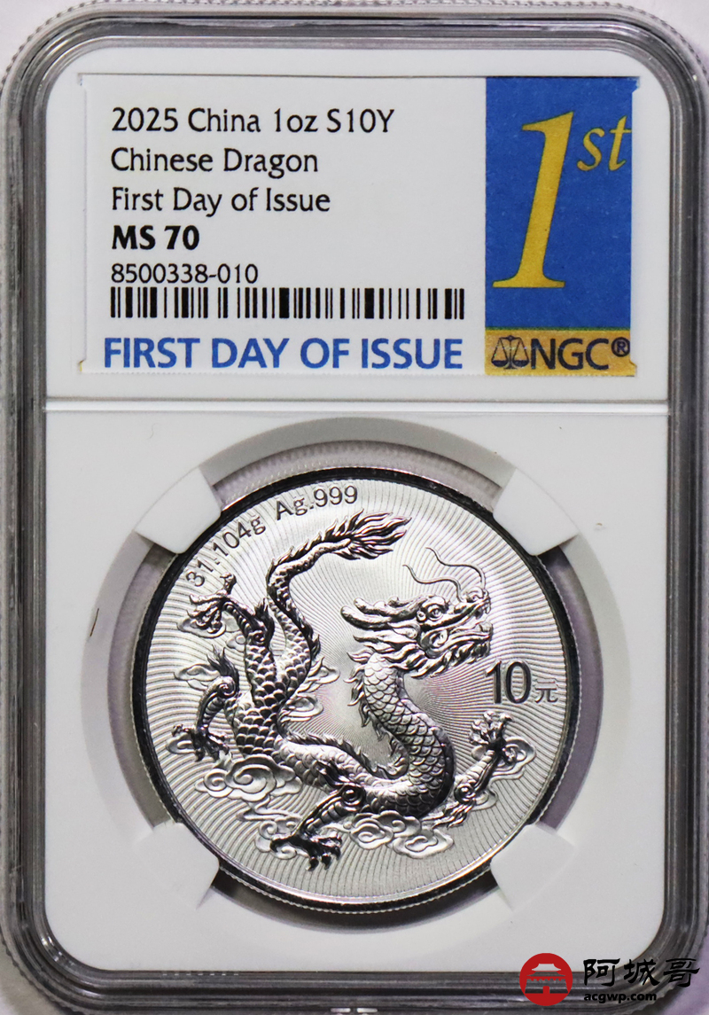 Lot:10 2025年中国龙银币 NGC MS70首日标