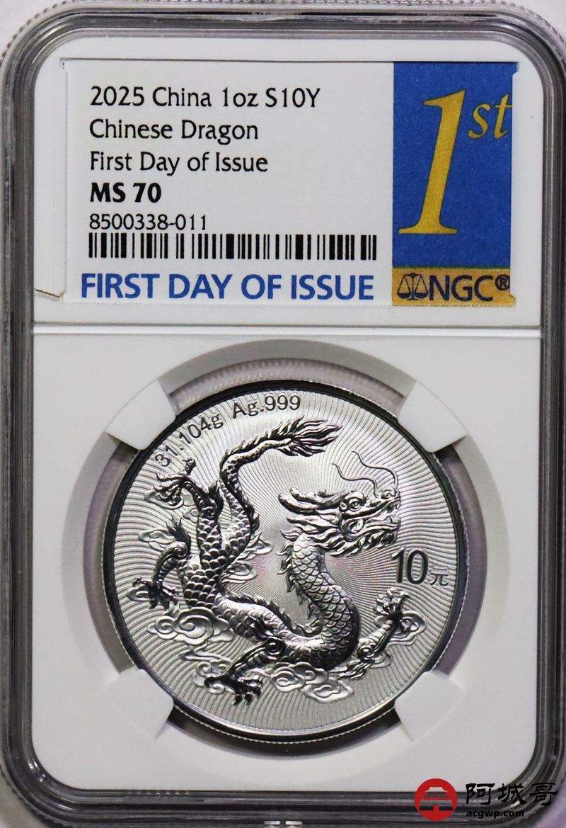 Lot:11 2025年中国龙银币 NGC MS70首日标