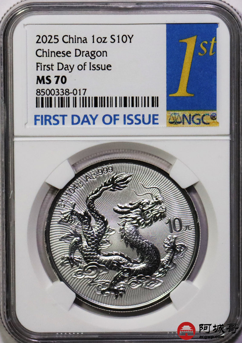 Lot:17 2025年中国龙银币 NGC MS70首日标