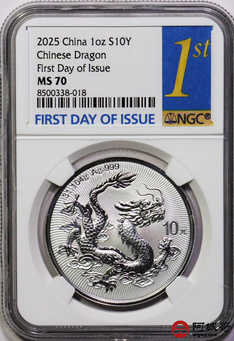 Lot:18 2025年中国龙银币 NGC MS70首日标