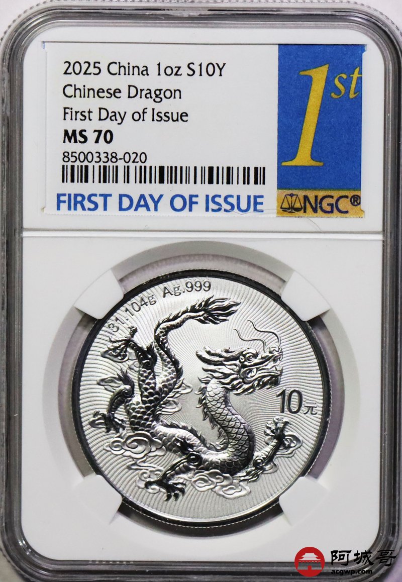 Lot:20 2025年中国龙银币 NGC MS70首日标