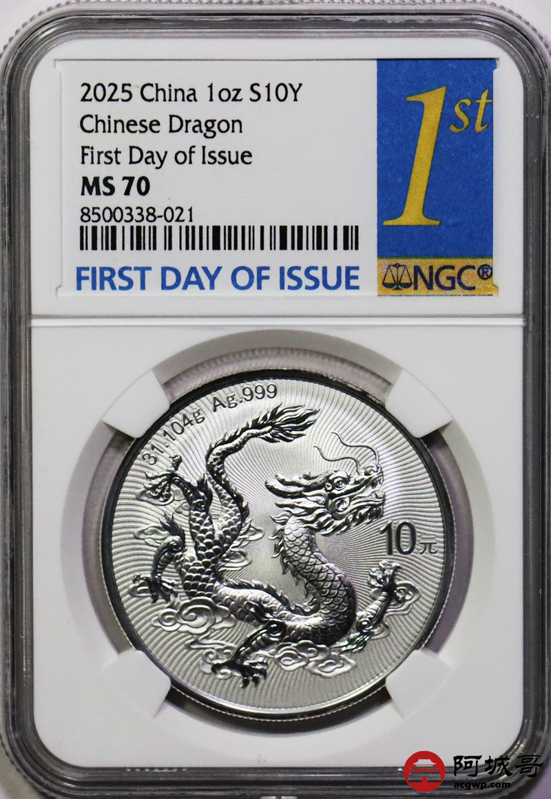 Lot:21 2025年中国龙银币 NGC MS70首日标