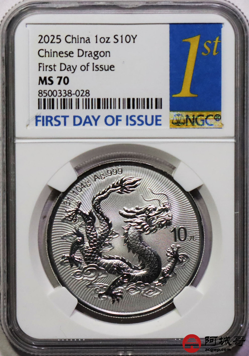 Lot:28 2025年中国龙银币 NGC MS70首日标