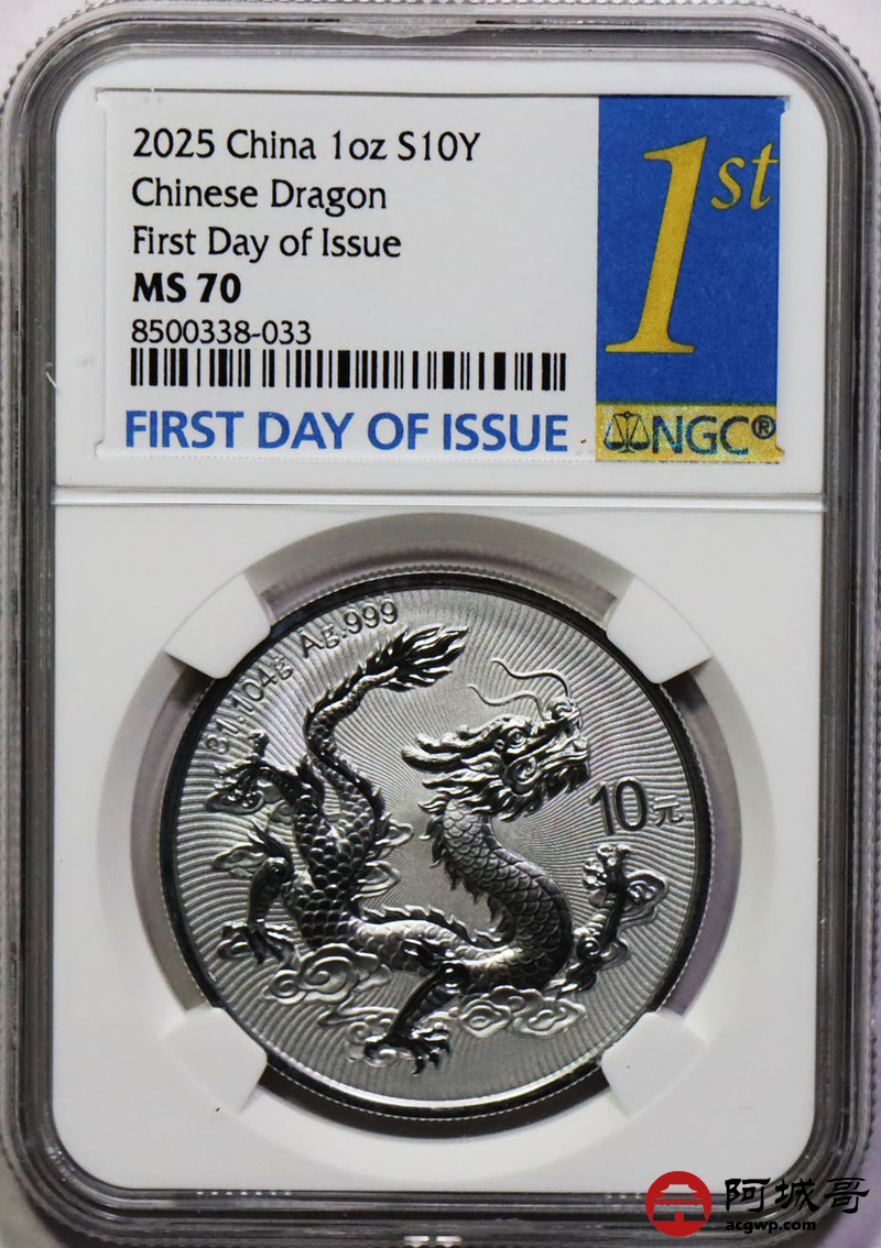 Lot:33 2025年中国龙银币 NGC MS70首日标