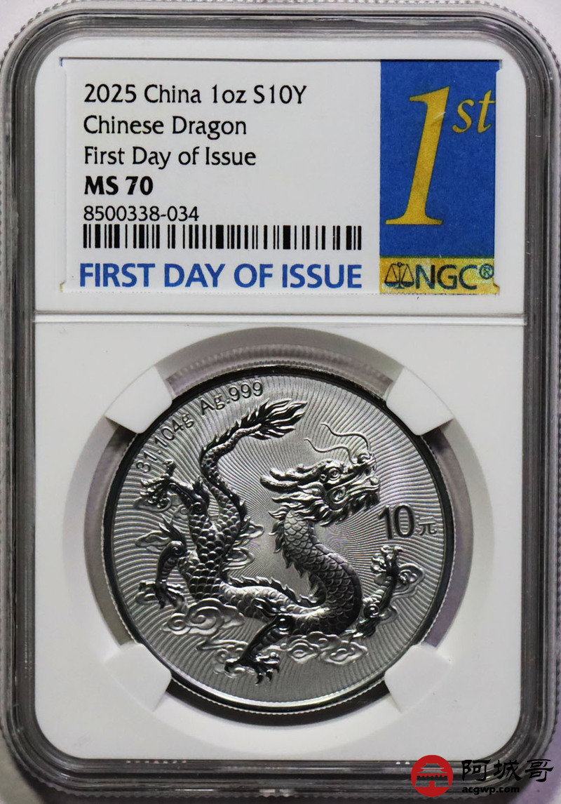 Lot:34 2025年中国龙银币 NGC MS70首日标