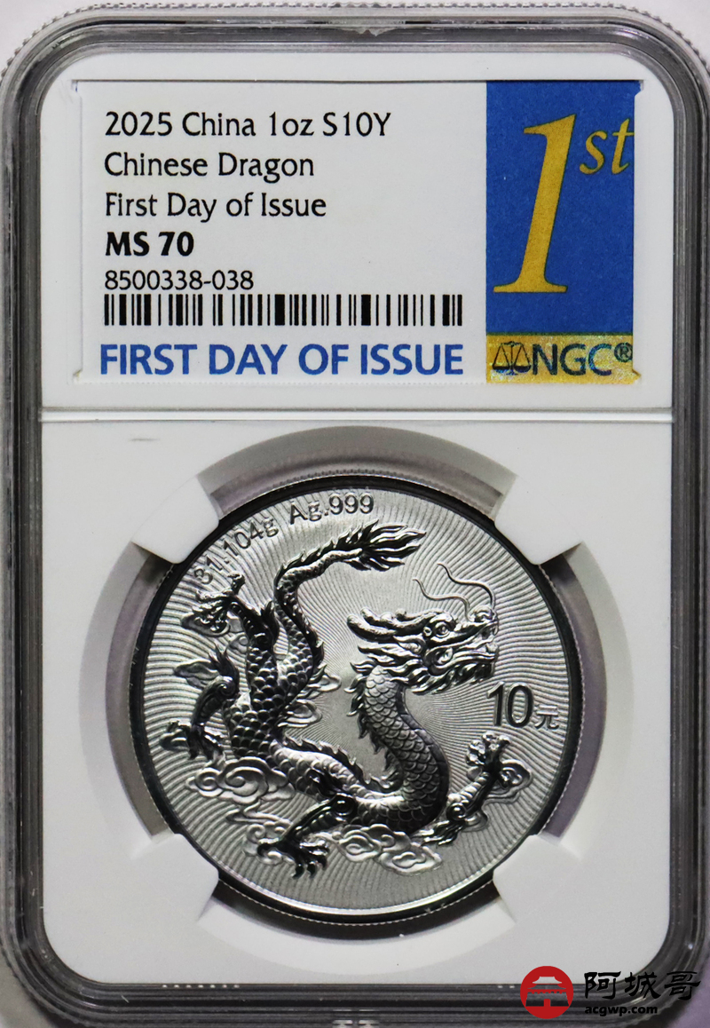 Lot:38 2025年中国龙银币 NGC MS70首日标