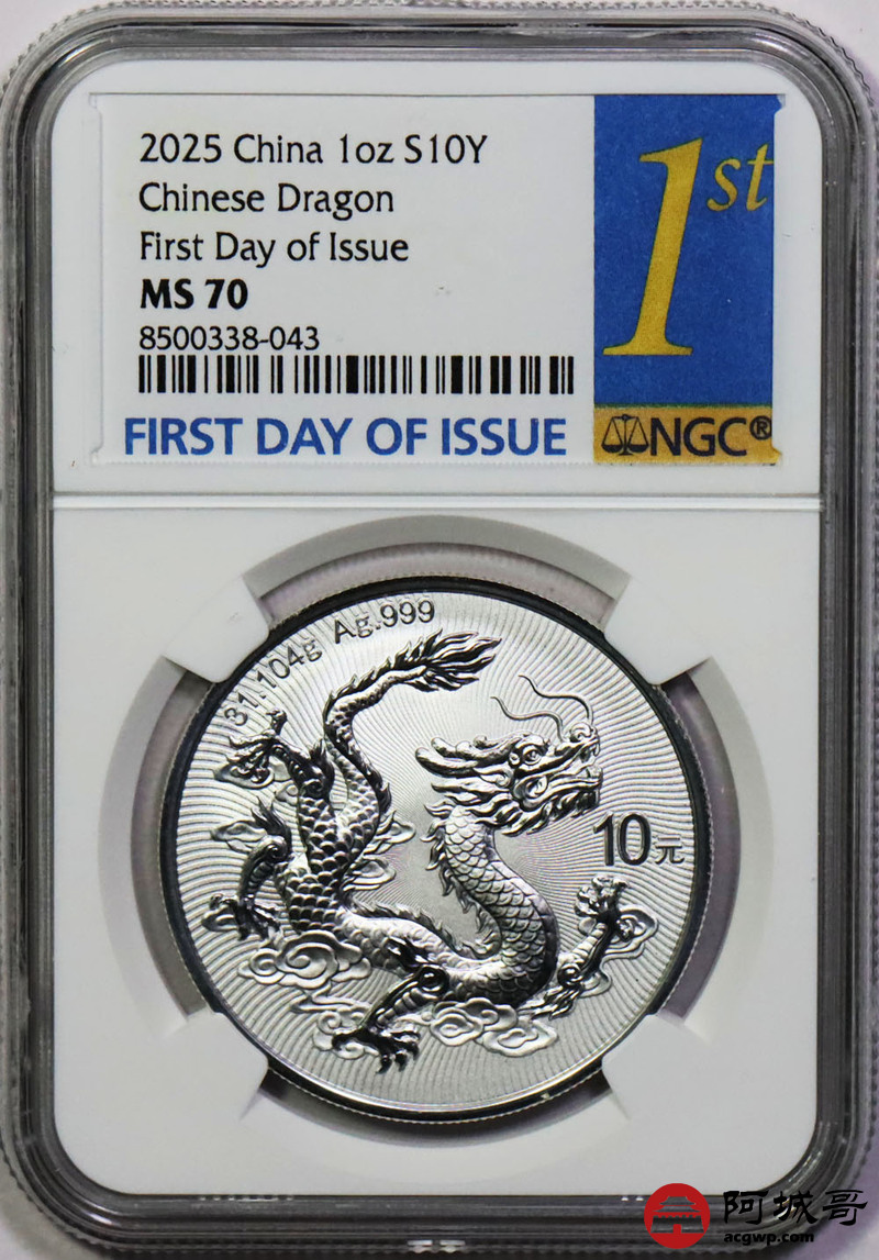 Lot:43 2025年中国龙银币 NGC MS70首日标