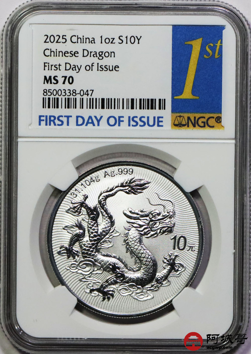 Lot:47 2025年中国龙银币 NGC MS70首日标