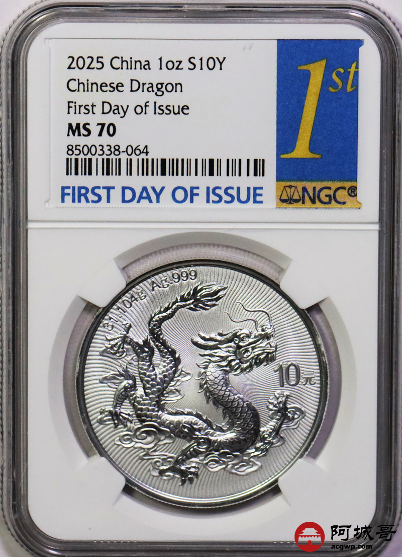 Lot:64 2025年中国龙银币 NGC MS70首日标