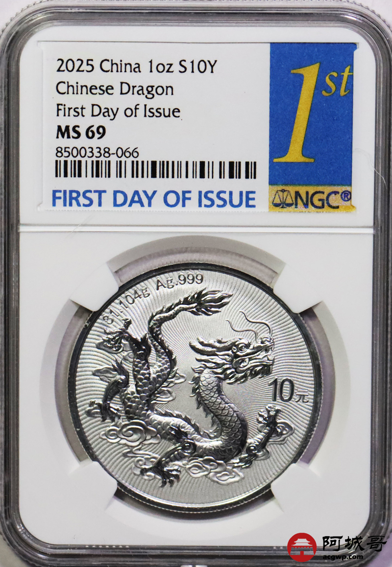 Lot:66 2025年中国龙银币 NGC MS69首日标