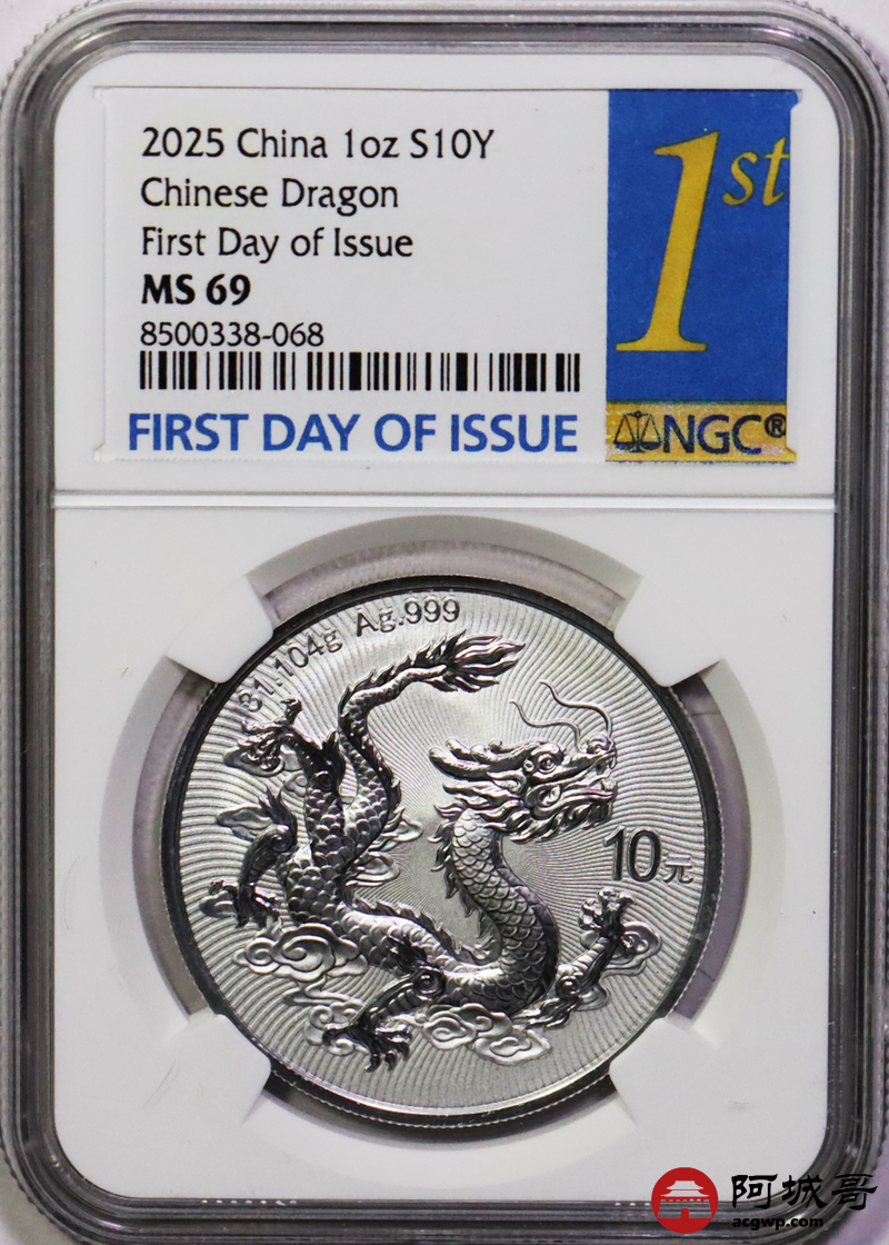Lot:68 2025年中国龙银币 NGC MS69首日标