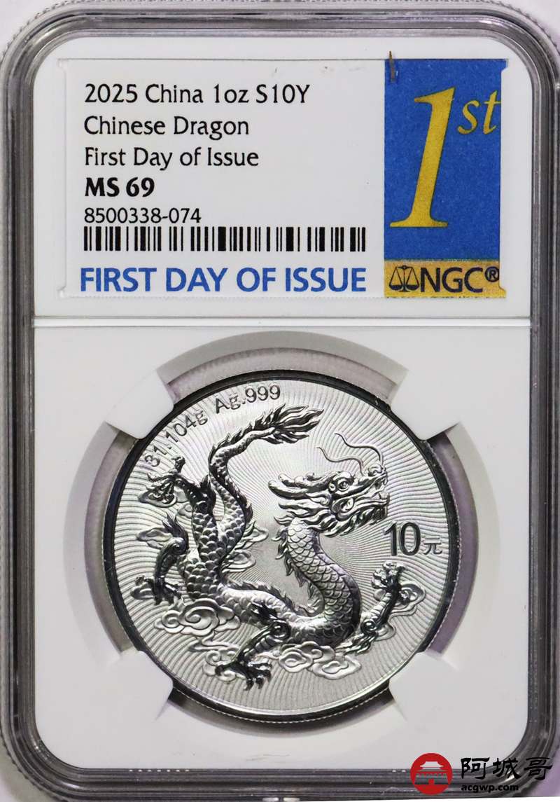 Lot:74 2025年中国龙银币 NGC MS69首日标