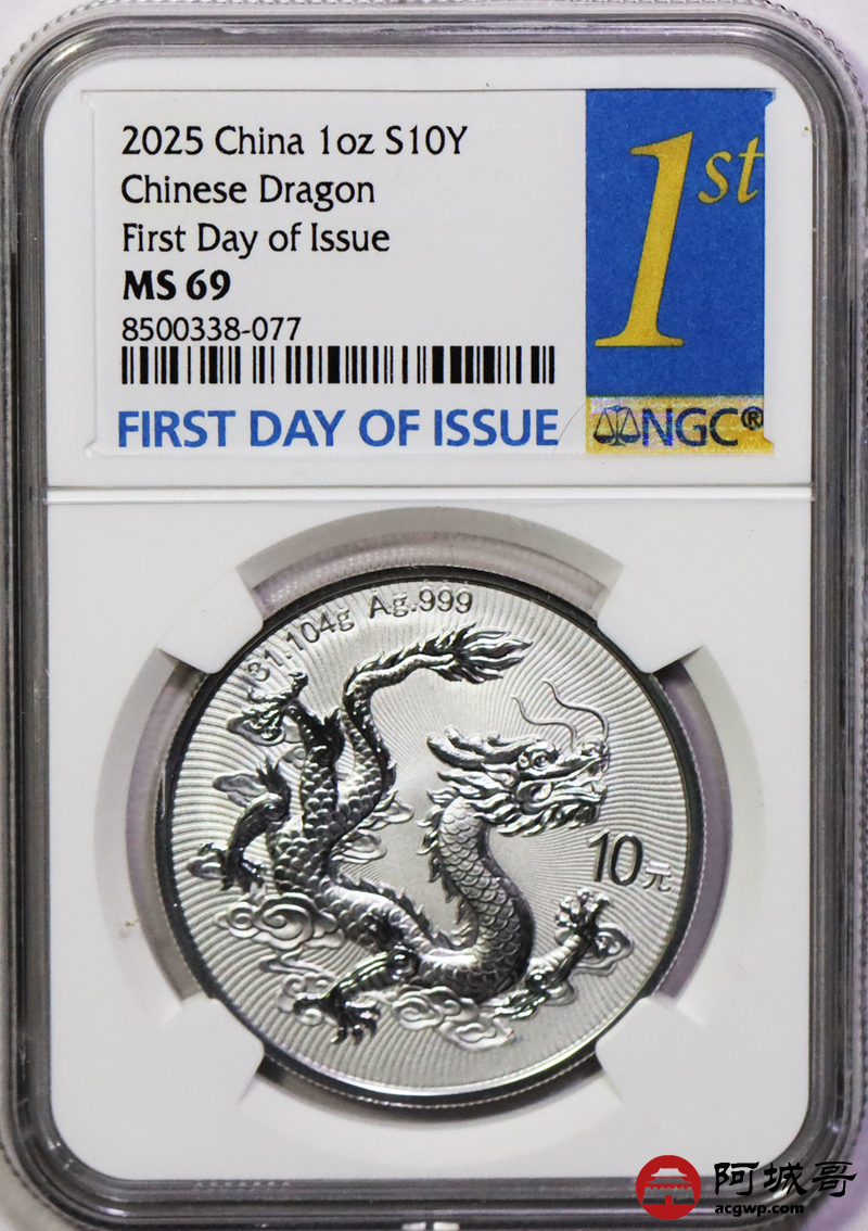 Lot:77 2025年中国龙银币 NGC MS69首日标