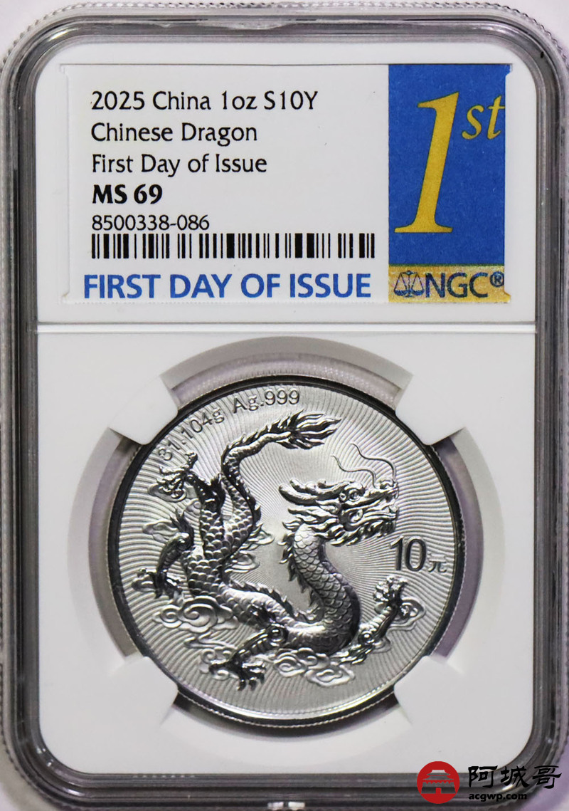 Lot:86 2025年中国龙银币 NGC MS69首日标