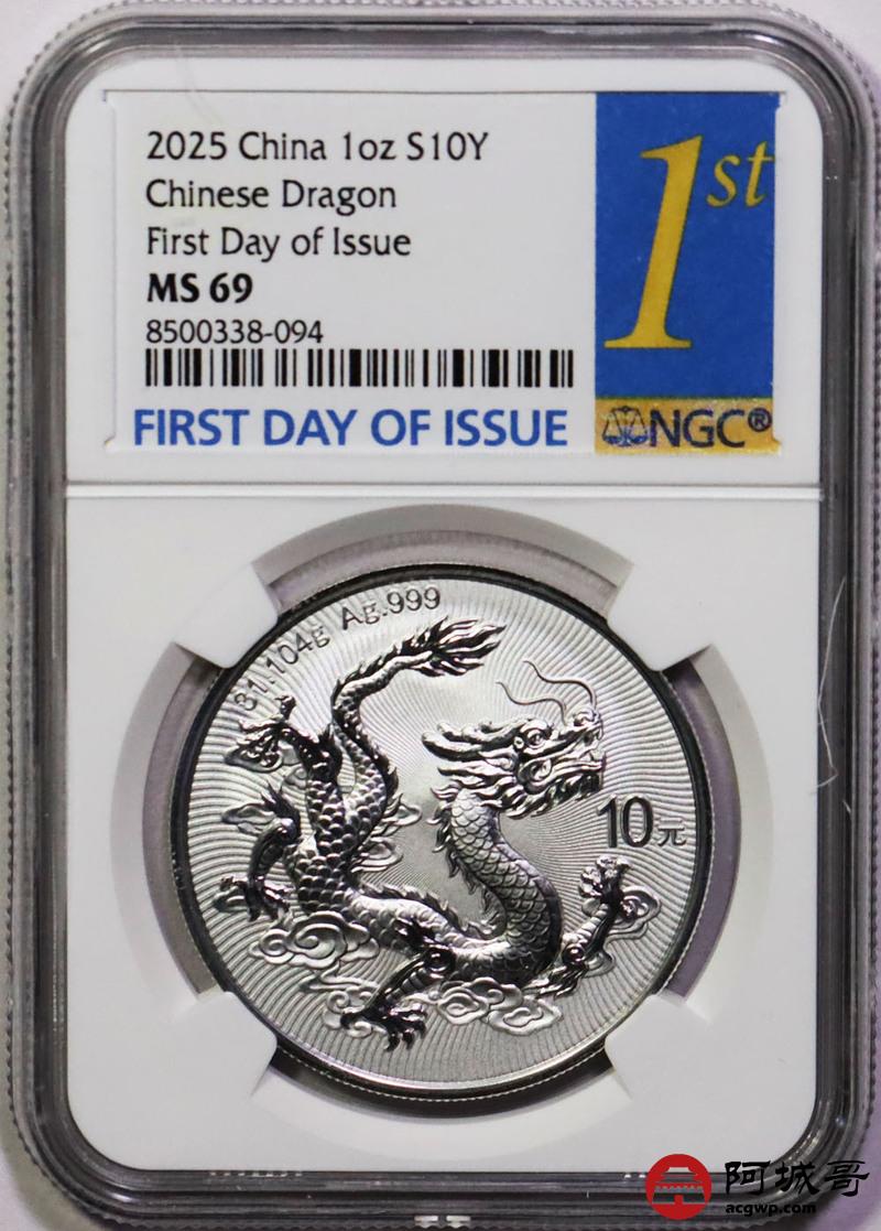Lot:94 2025年中国龙银币 NGC MS69首日标