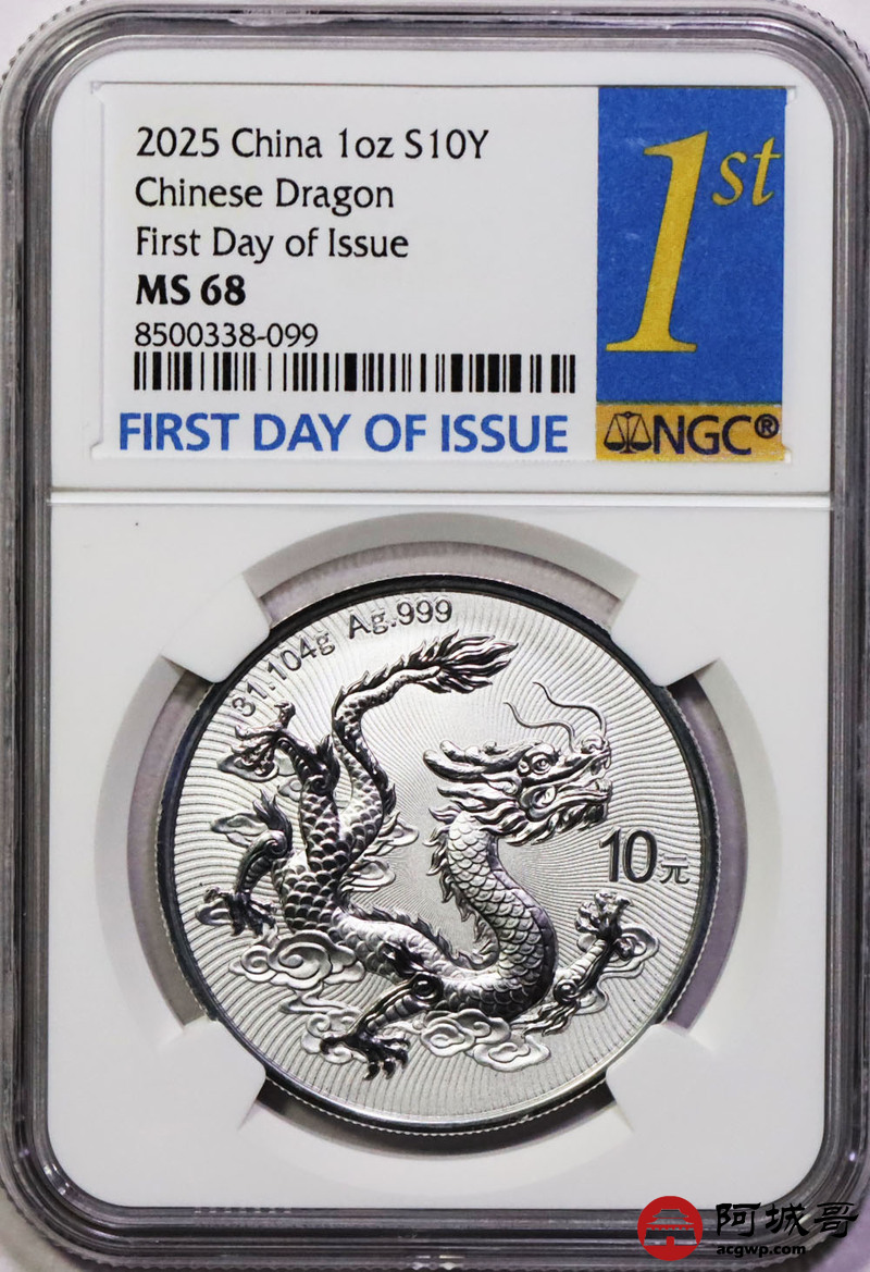 Lot:99 2025年中国龙银币 NGC MS68首日标