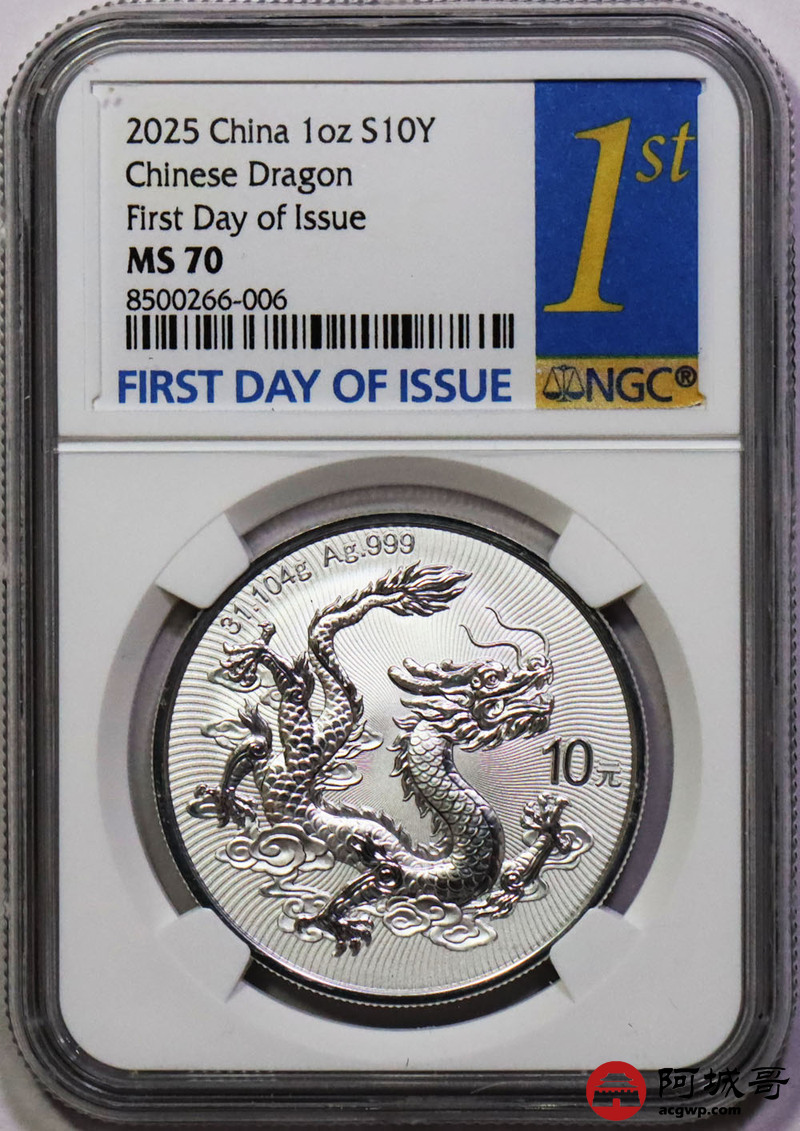 Lot:15 2025年中国龙银币 NGC MS70首日标