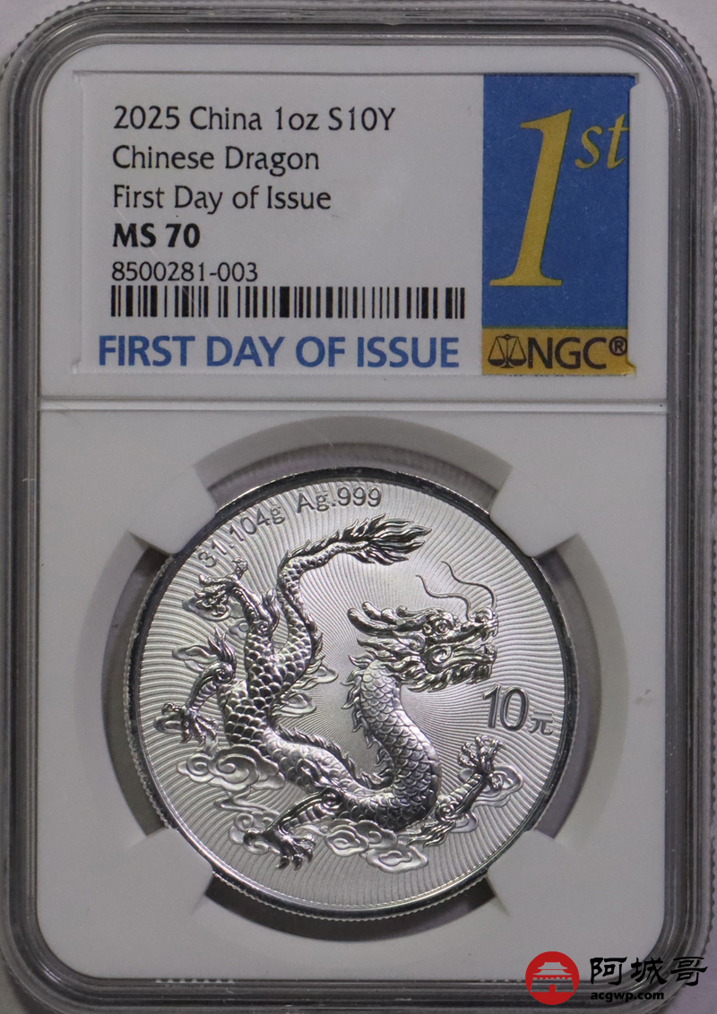 Lot:29 2025年中国龙银币 NGC MS70首日标