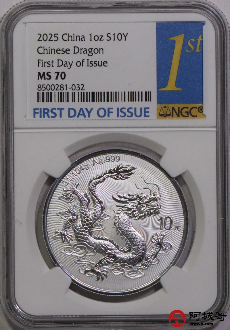 Lot:28 2025年中国龙银币 NGC MS70首日标 银尾龙
