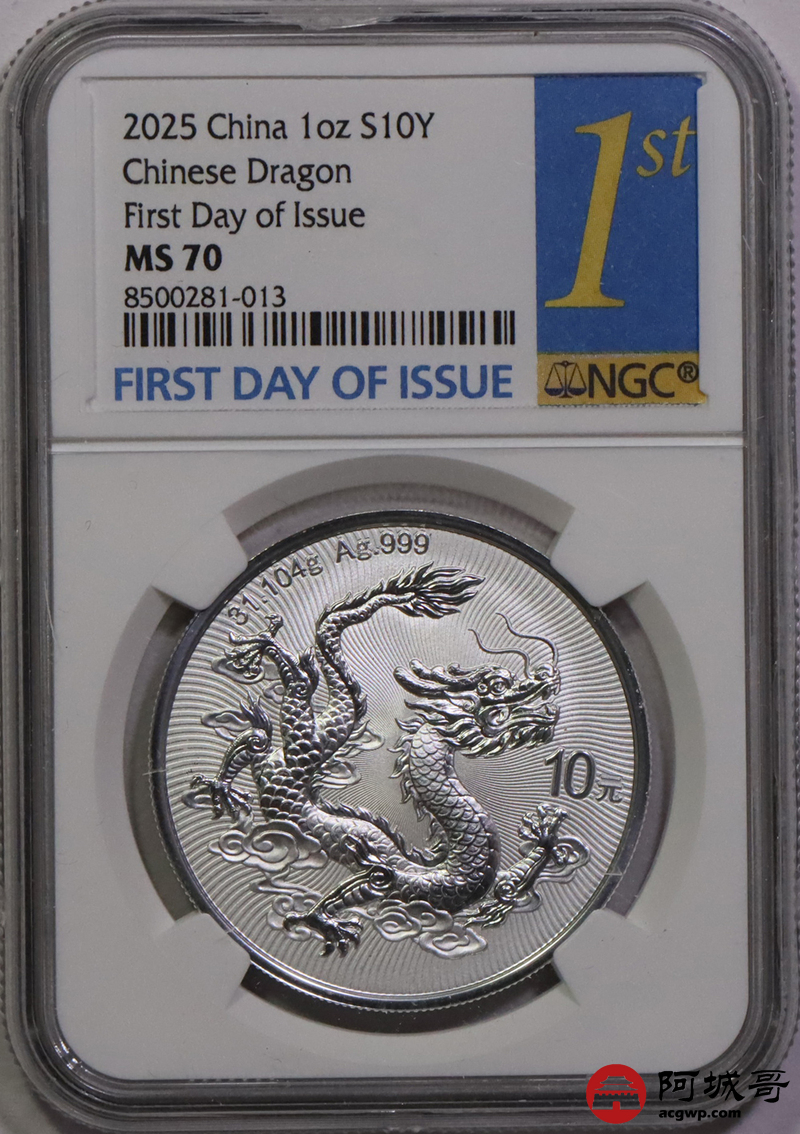 Lot:11 2025年中国龙银币 NGC MS70首日标