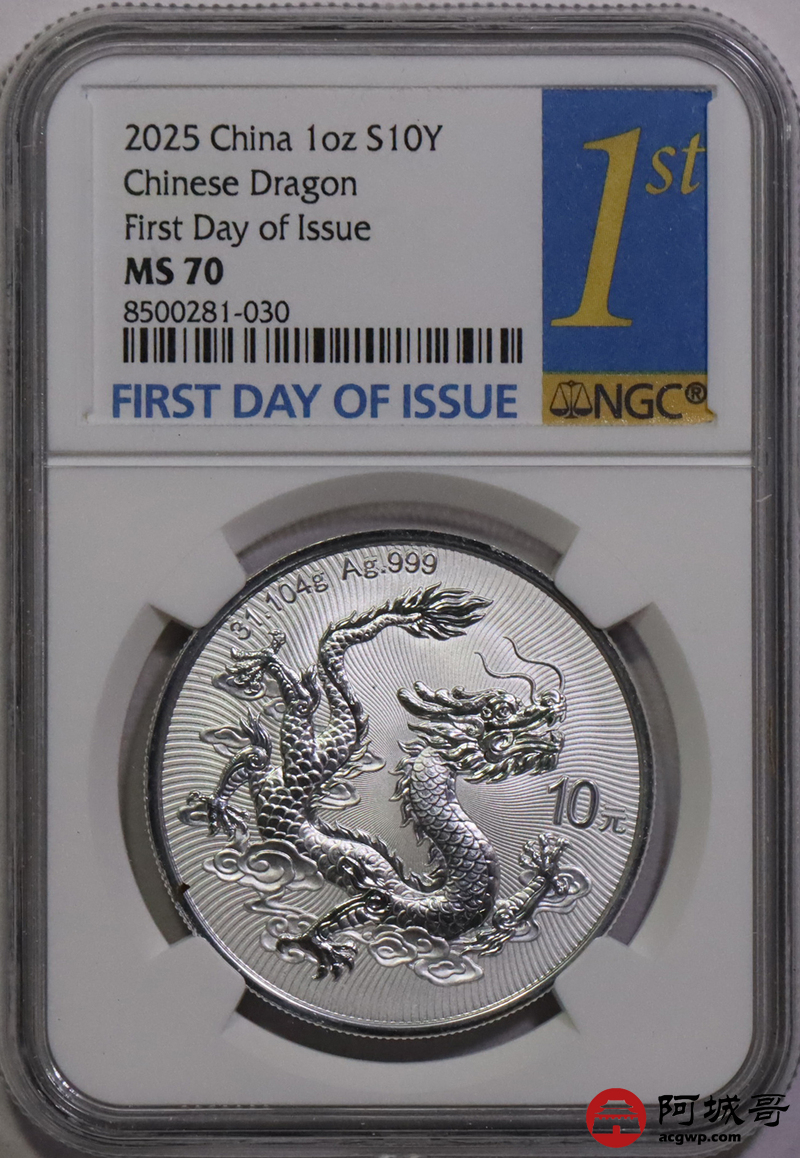 Lot:42 2025年中国龙银币 NGC MS70首日标