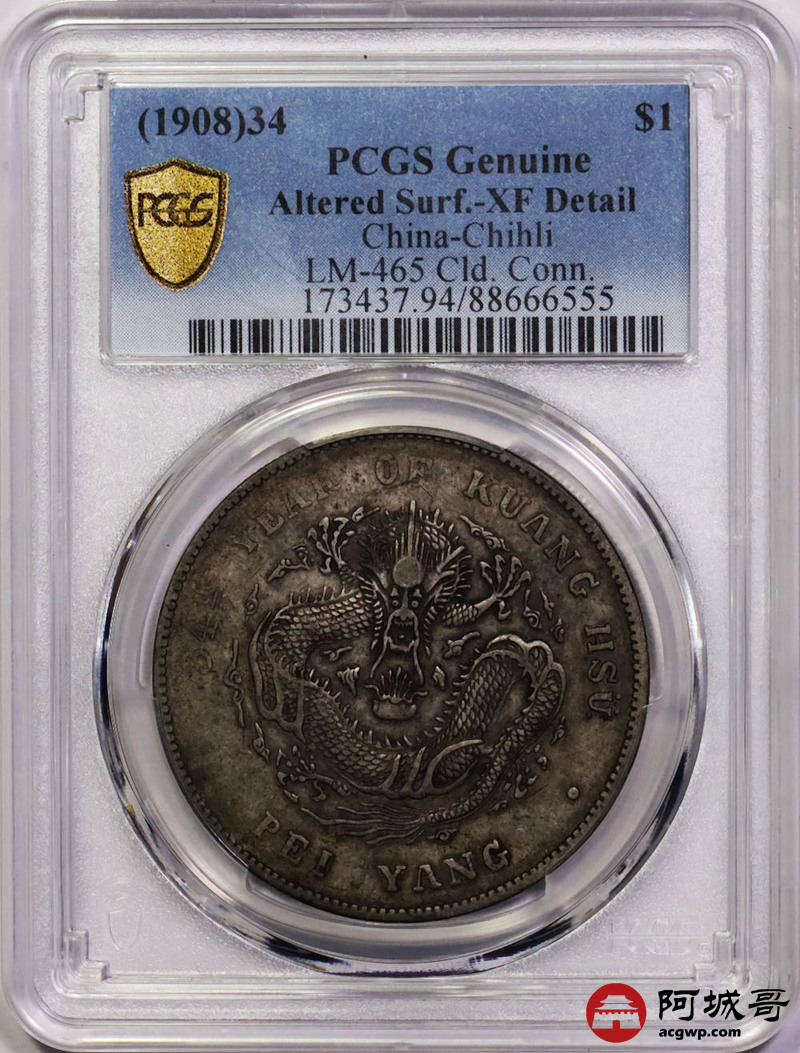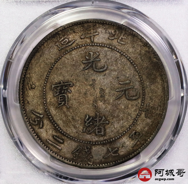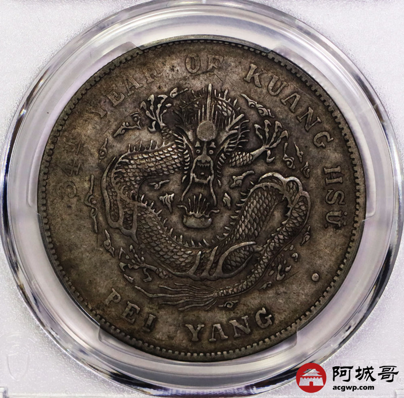 Lot:6448 1908光绪三十四年北洋造光绪元宝库平七钱二分银币一枚,原味状态,老包浆PCGS XF94评级编号:88666555