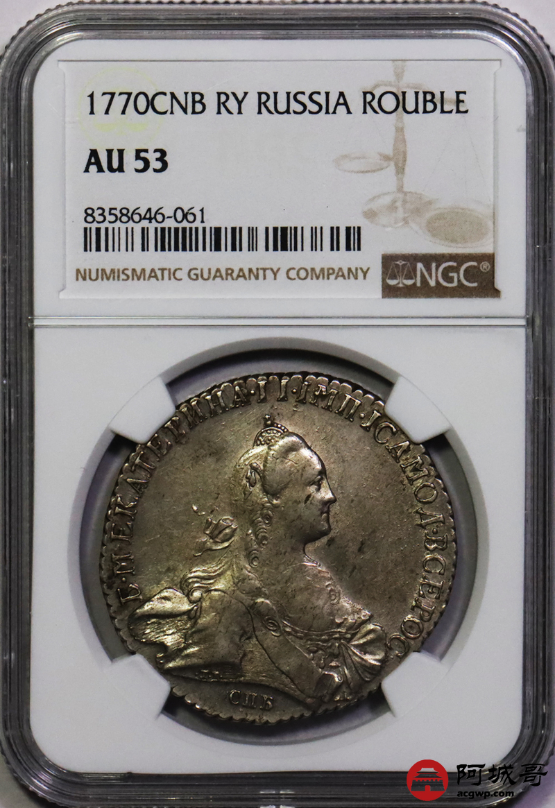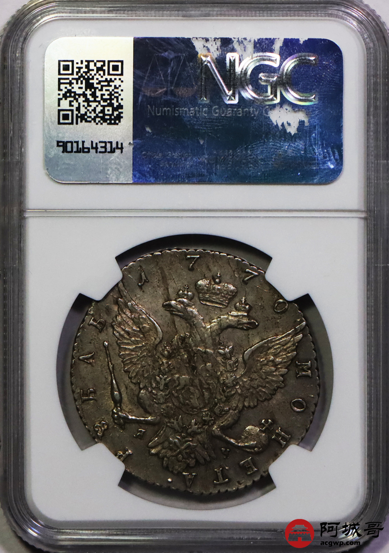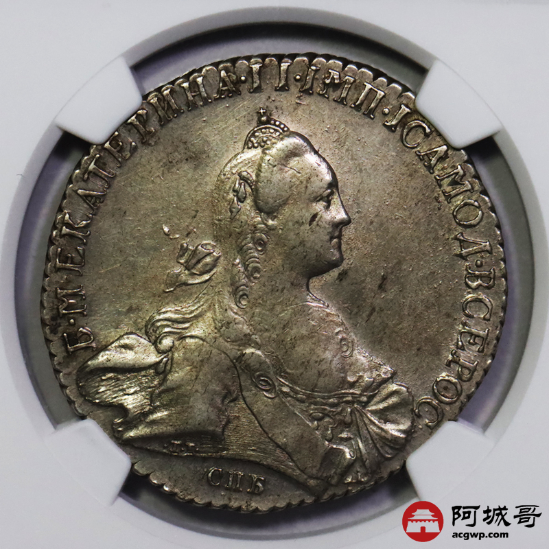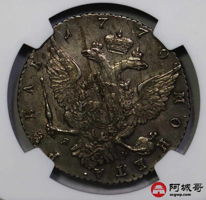 Lot:30 NGC AU53 沙俄1770年叶卡捷琳娜二世双头鹰卢布大银币