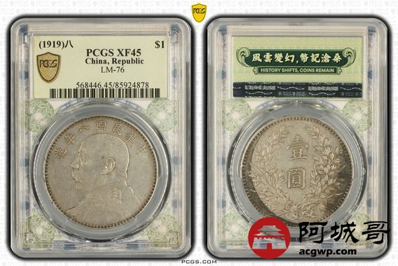 Lot:16 原味老包浆 八年大头壹圆 PCGS XF45
