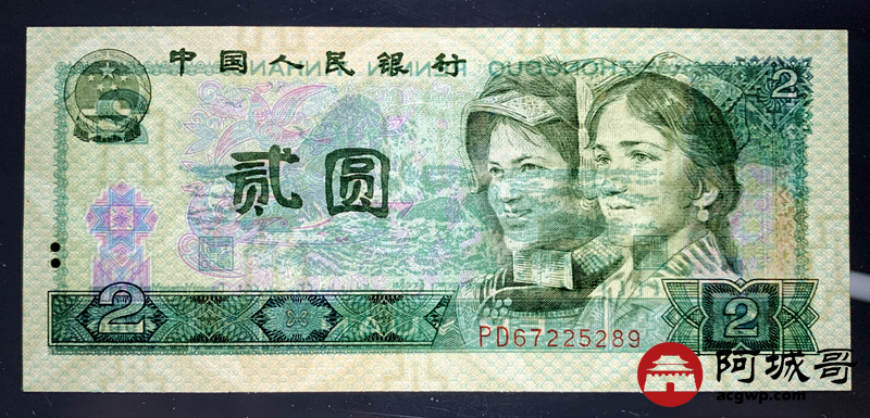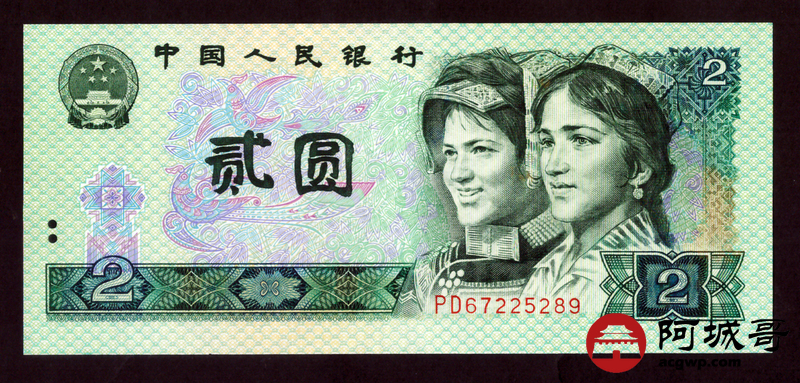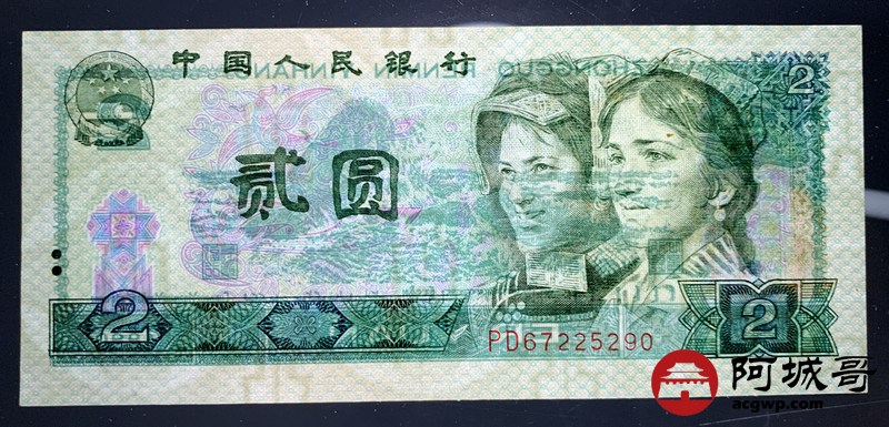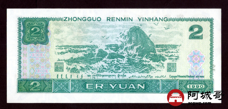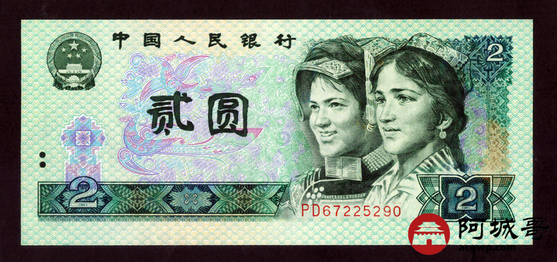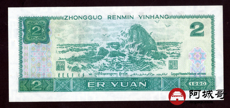 Lot:2 四版 1990年 中国人民银行 2元 绿幽灵 两张全新