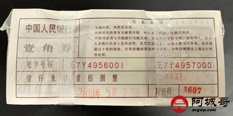 Lot:6 四版 壹角纸币 一捆全新