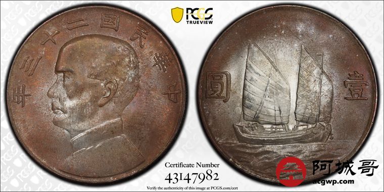 Lot:17 咖色彩浆原光 二十三年船洋 PCGS MS64