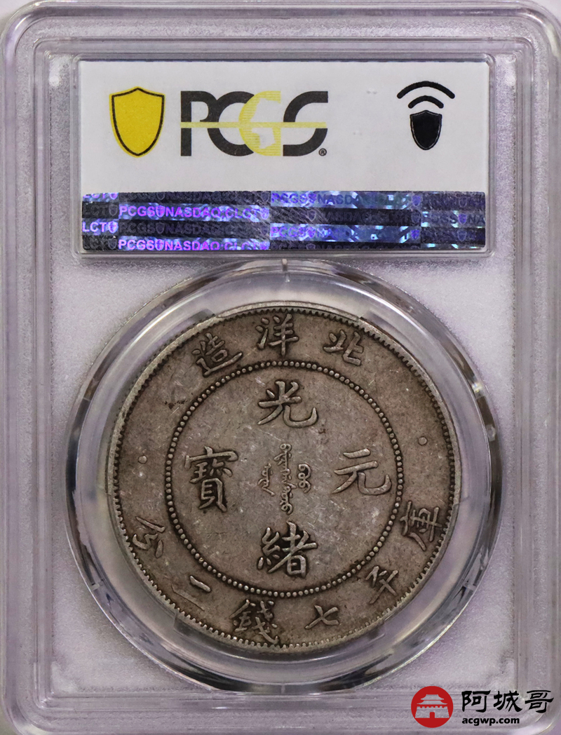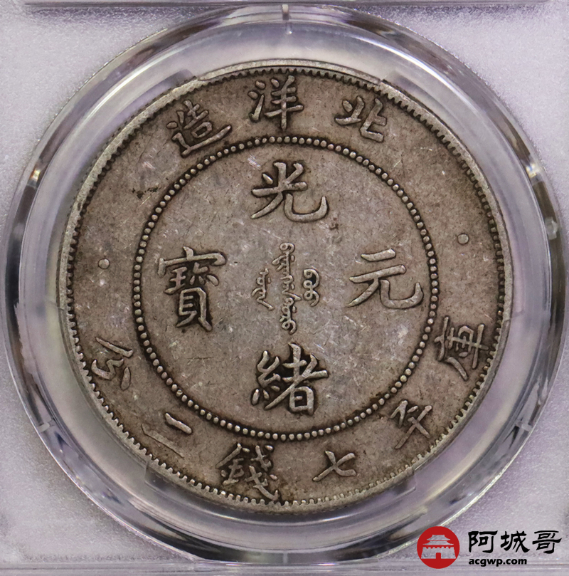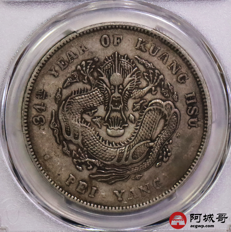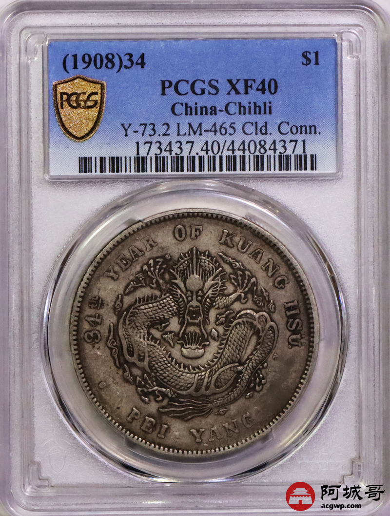 Lot:10 原味老包浆 北洋34七钱二分 短尾龙 PCGS XF40