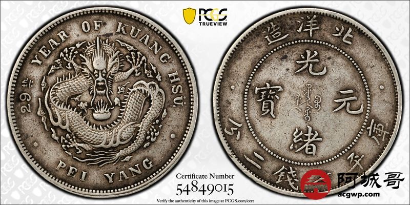 Lot:11 原味老包浆 北洋29七钱二分 PCGS XF40