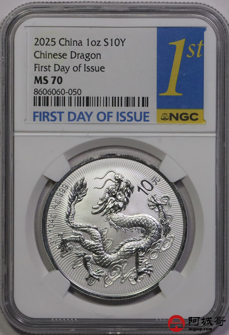 Lot:45 2025年中国龙银币 NGC MS70首日标 圆圆串号 雷达金马王