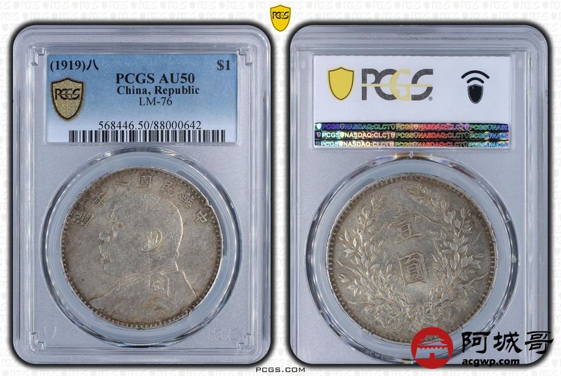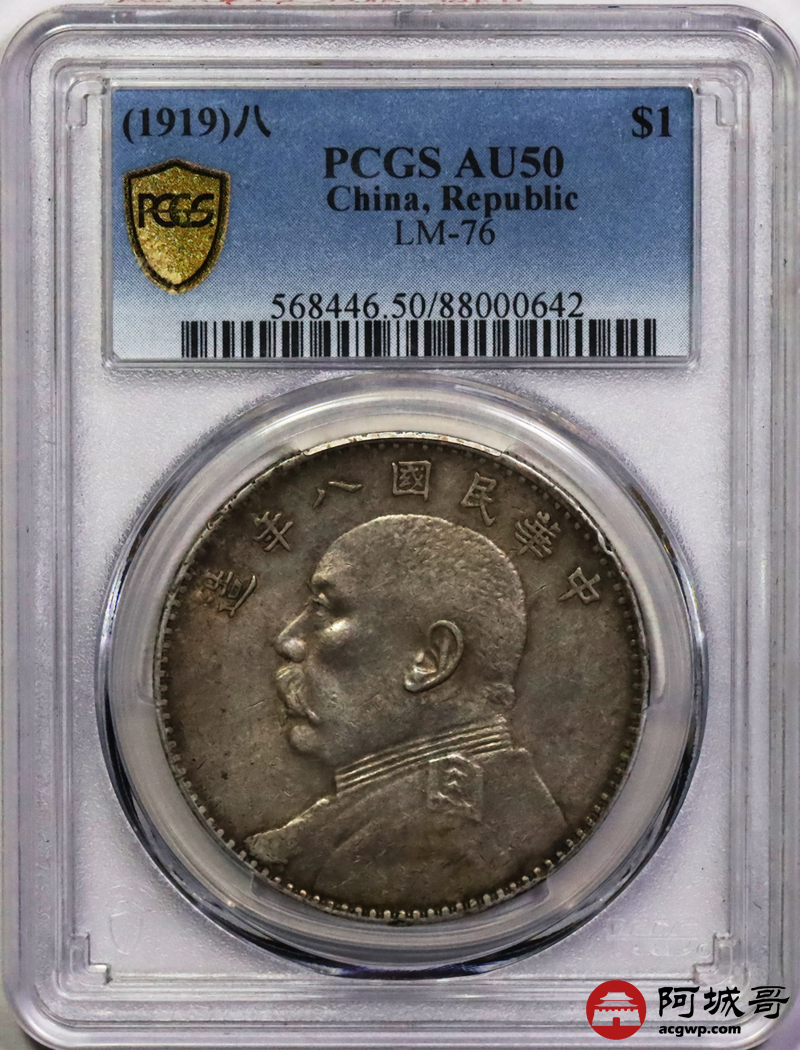Lot:23 原味深打 黄油转光 八年大头壹圆 PCGS AU50