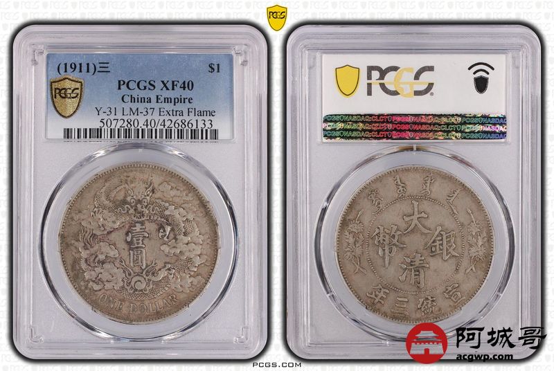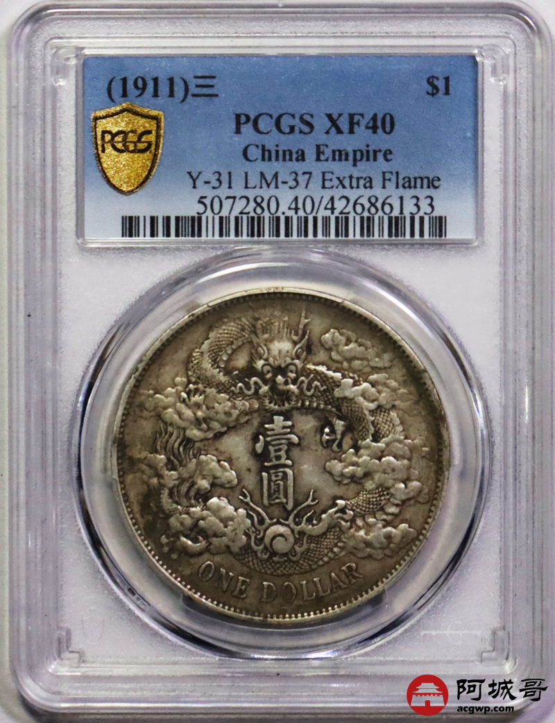 Lot:15 原汁原味 大清宣三壹元 PCGS XF40