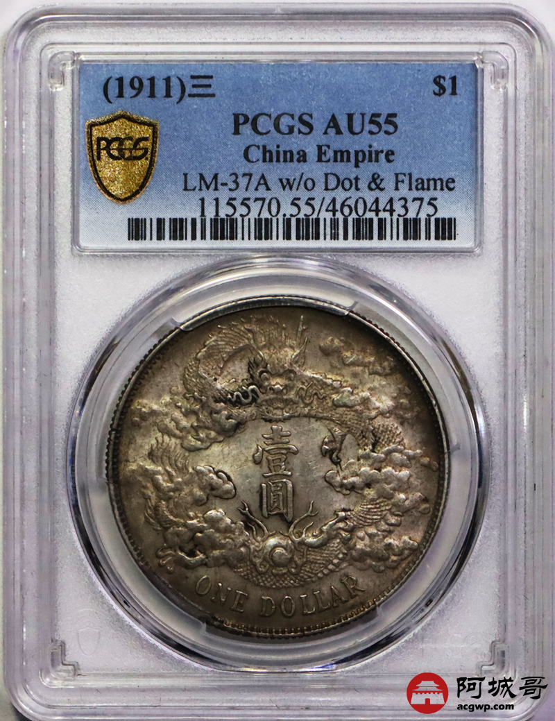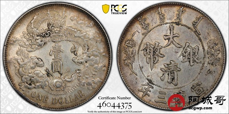 Lot:14 原光 五彩 满花枝 全深打 大清宣三壹元 PCGS AU55