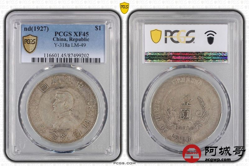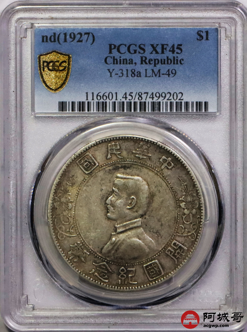 Lot:32 原味 包浆 孙像小头壹元 PCGS XF45