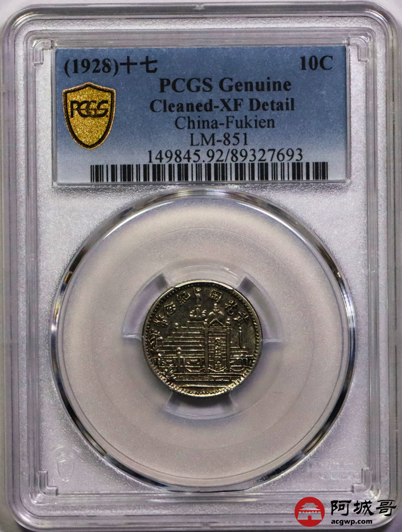 Lot:33 原味 民国十七年 黄花岗一角 PCGS XF