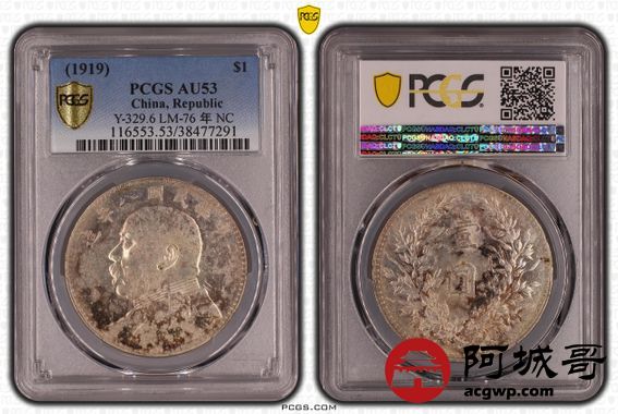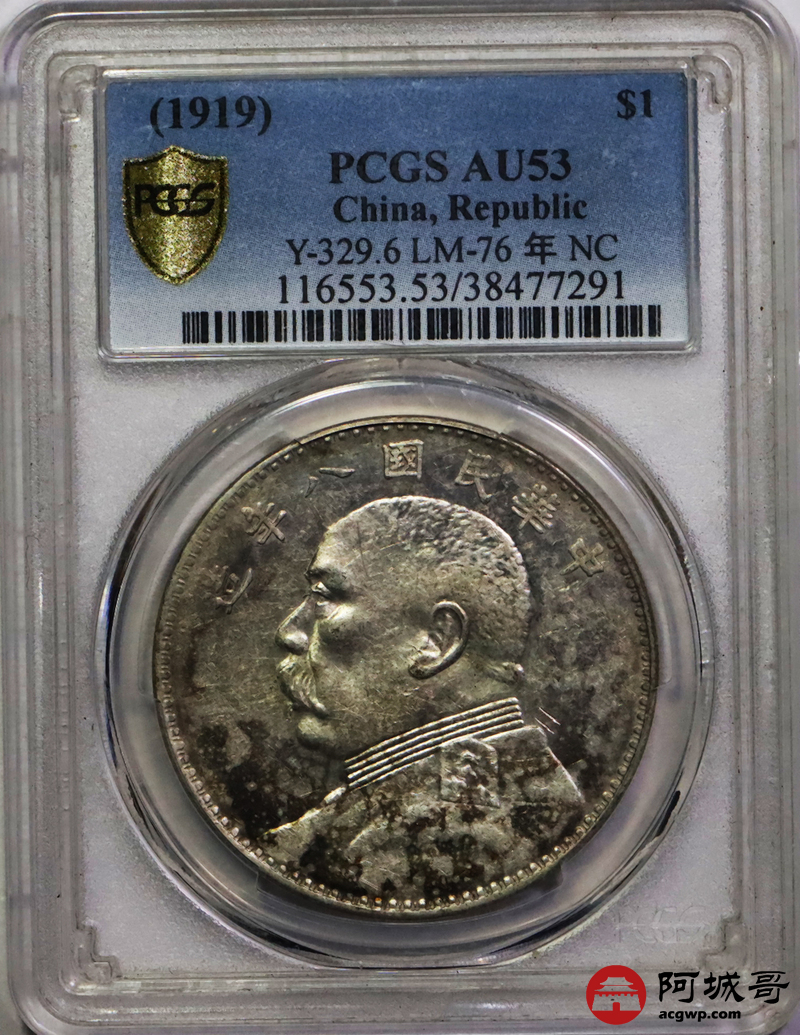 Lot:26 淡彩 八年大头壹圆 PCGS AU53