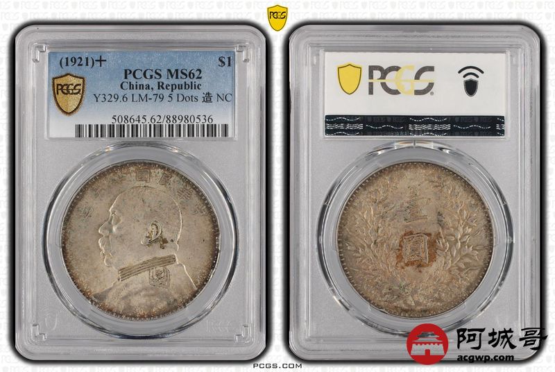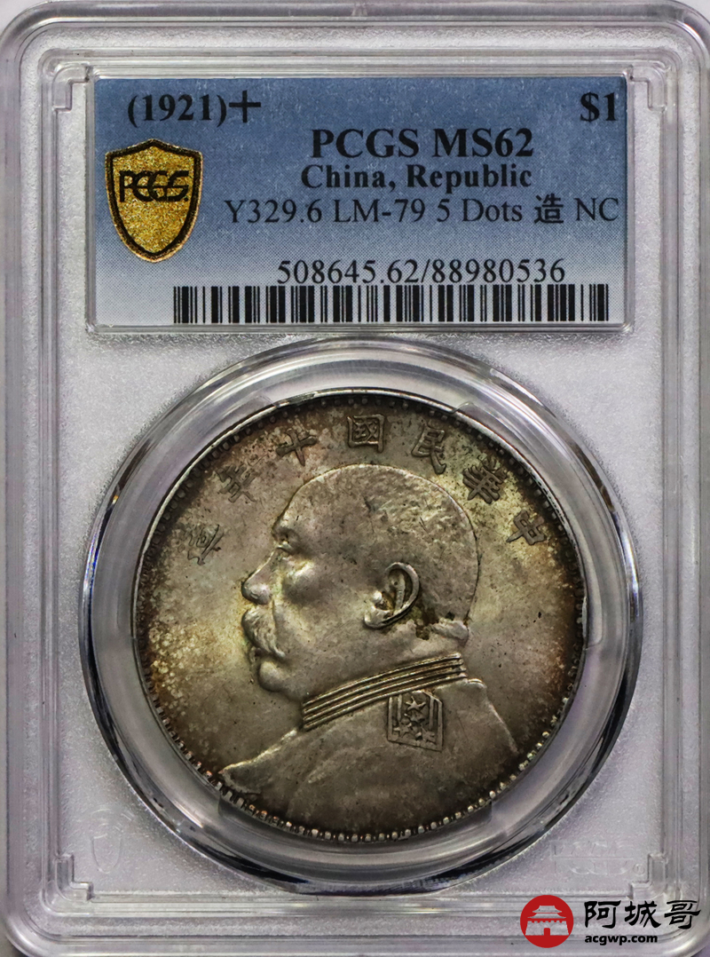 Lot:4 民国十年大头十年八背下五珠PCGS MS62