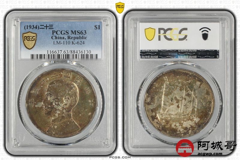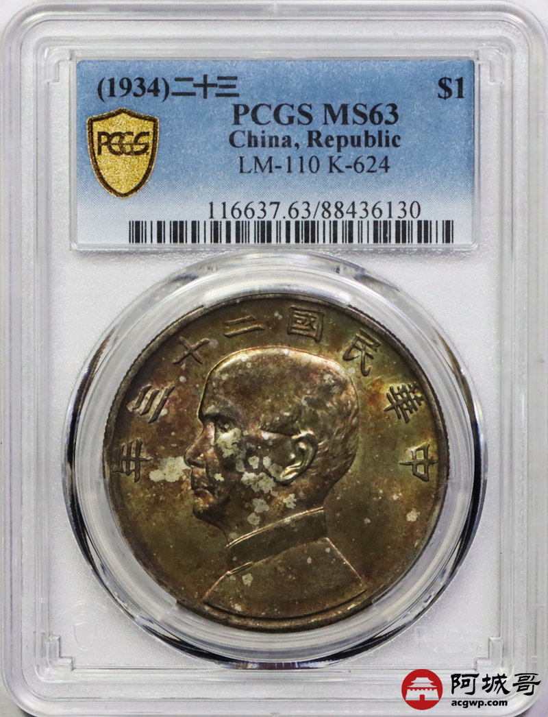 Lot:7 原光 五彩 二十三年船洋壹圆 PCGS MS63